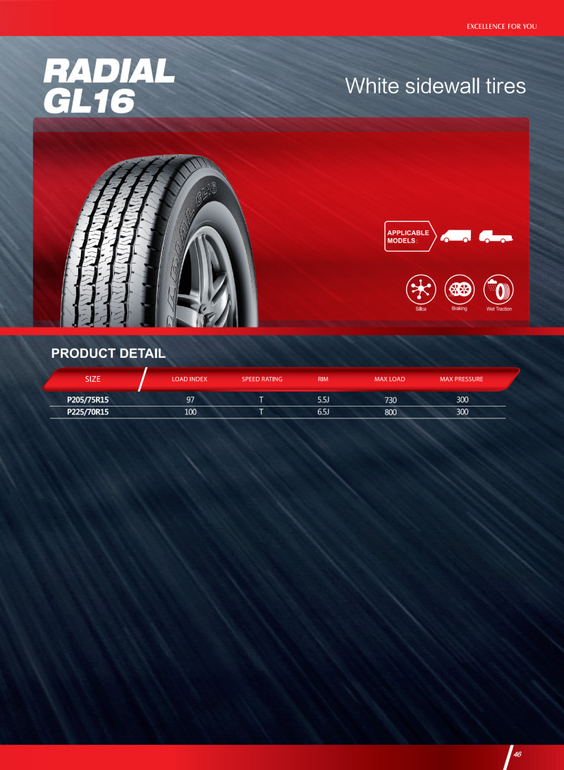 胎侧白环装饰,汽车行驶更受瞩目,独特花纹设计,具有良好的排水性能和制动力
