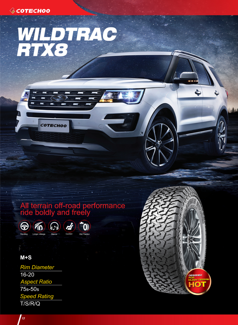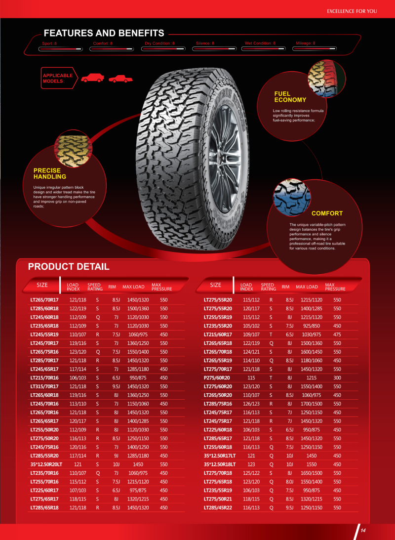 独特花纹设计,在非铺装路面上具有超强的耐用性和抓地力,是一款适用各种路况的越野专用轮胎。
