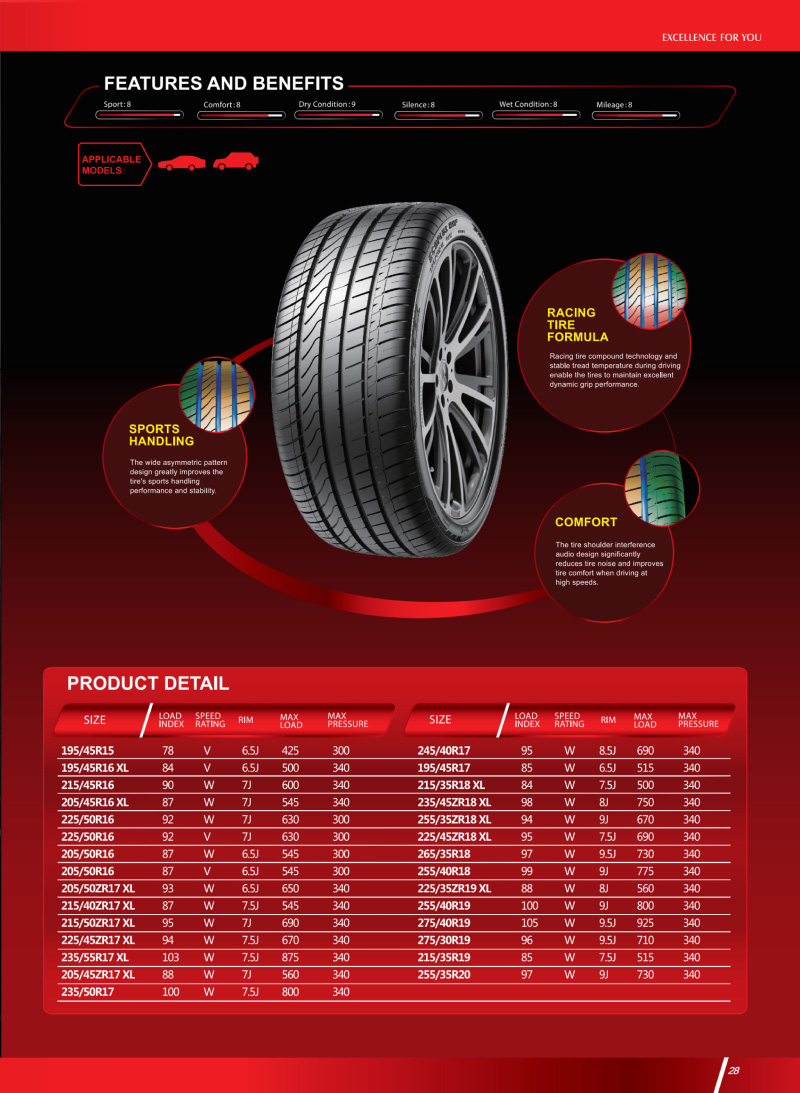 出众的操控性能,运动型轮胎中不可多得的兼具舒适性,驾乘更流畅、更舒适。