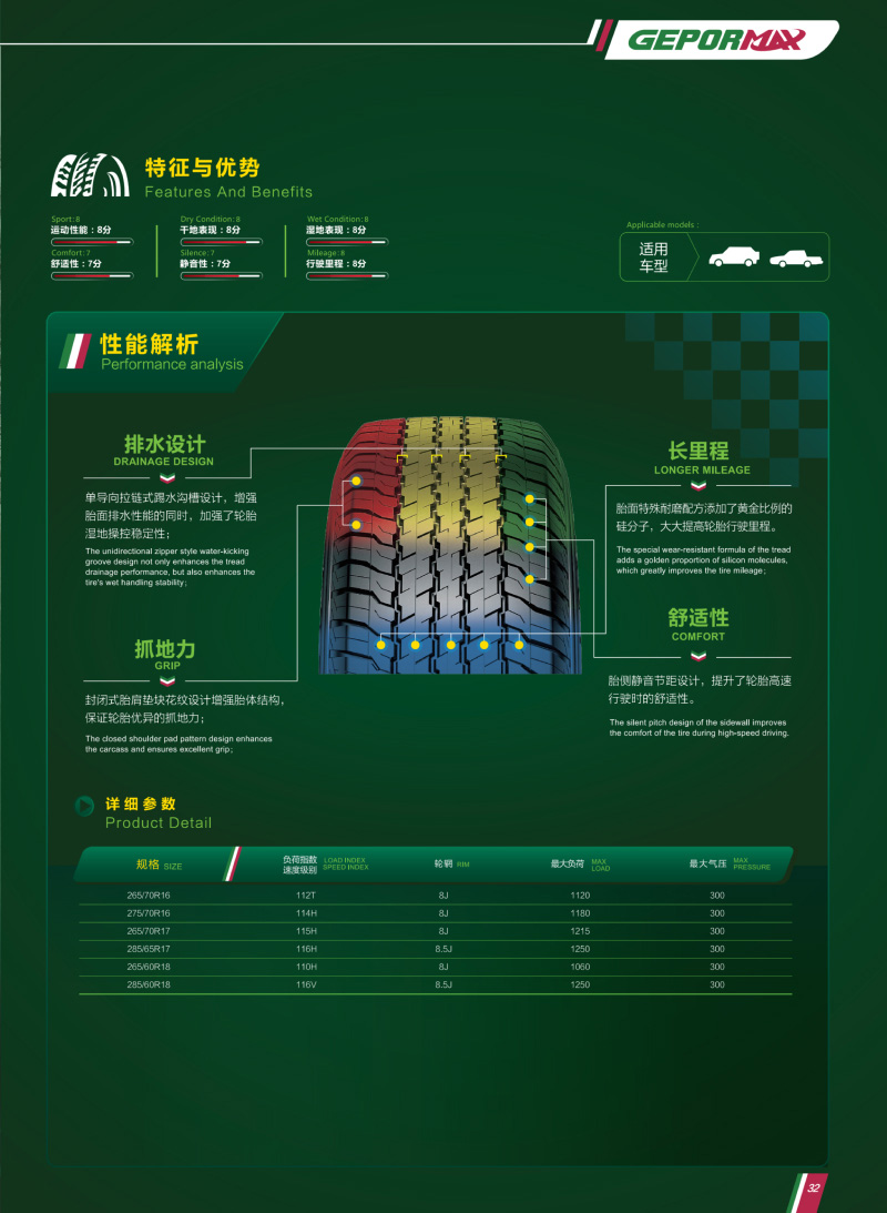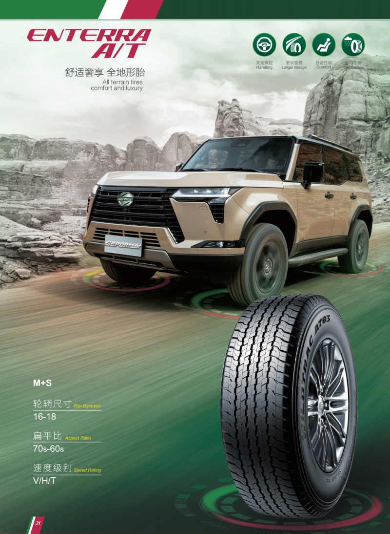 一款优秀的全地形轮胎,突破性技术塑造胎面结构,对各自路况具有良好的适应能力。