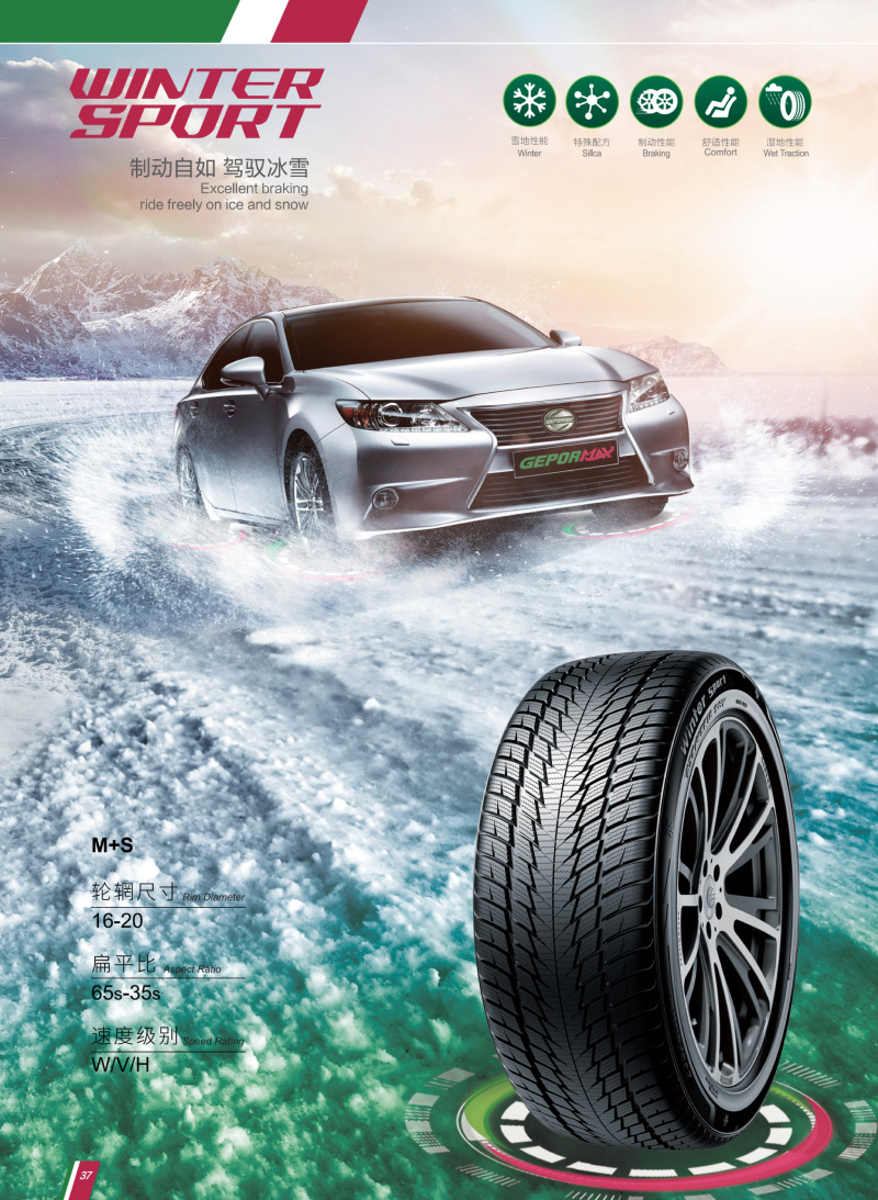 WINTER SPORT 独特胎面胶料配方及花纹,为轮胎提供良好的牵引力和制动性能,可保证在冬季气候下的驾驶安全性能。